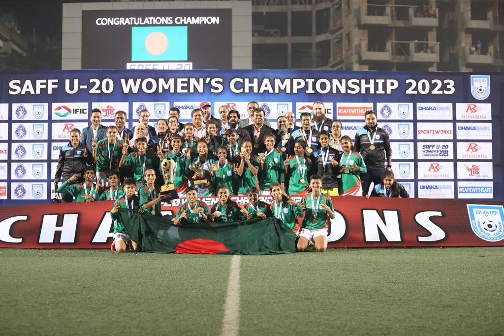 Under the management of the South Asian Football Federation and under the supervision of the Bangladesh Football Federation, the matches of 'SAFF U-20 Women's Championship 2023' started from February 03, 2023 with the participation of the host Bangladesh, Bhutan, India and Nepal U-20 Women's National Football Team at Bir Shrestha Shahid Shipahi Mohammad Mostafa Kamal of Kamalapur. In the final match of the championship, Bangladesh U-20 Women's National Team won 3-0 against Nepal U-20 Women's National Football Team. For Bangladesh, Shaheda Akter Ripa scored the first goal in the 42nd minute, Shamsunnahar scored the second goal in 45+1 minutes, and Unnoti Khatun scored the third goal in the 87th minute.