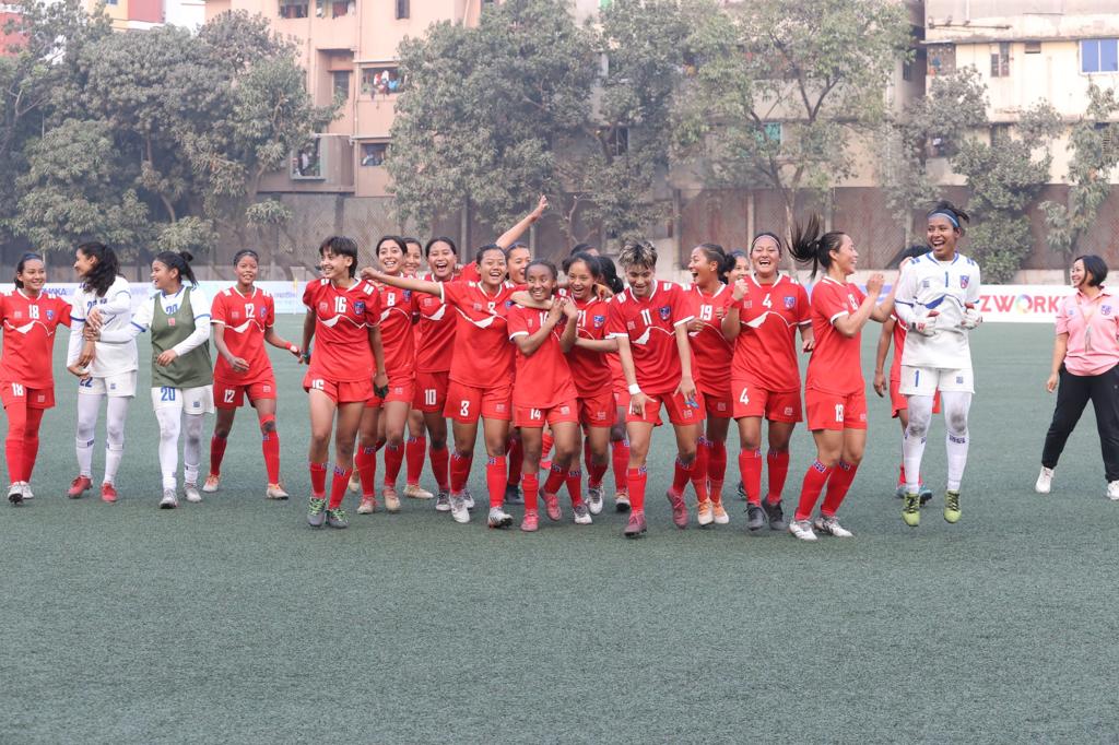 The match of "SAFF U-20 Women’s Championship 2023" between India U-20 Women’s National Team and Nepal U-20 Women’s National Team was held at Bir Shreshtha Shahid Shipahi Mostofa Kamal Stadium at 3:00 pm (Bangladesh Time). Nepal won the match by 3-1. For Nepal, Anjali Chand scored the first goal in the 48th minute, Preeti Rai scored the second goal in the 69th minute, and Amisha Karki scored the third goal in the 89th minute. On the other hand, for India, Apurna Narzary scored one goal in the 21st minute.