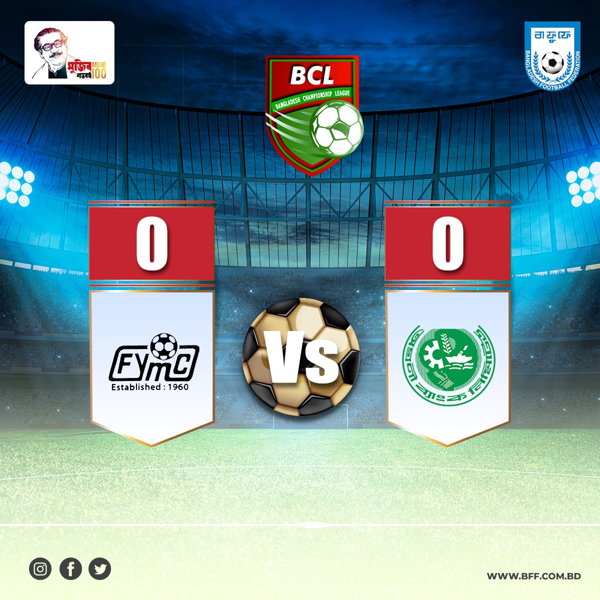 Today's match of ‘Bangladesh Championship League 2020-21’ has been played at Bir Sherestha Shaheed Shipahi Mostafa Kamal Stadium between Agrani Bank Ltd. Sports Club and Fakirerpool Youngmen's Club, Dhaka at 3:30 PM. The match was held to draw by 0-0 goal.