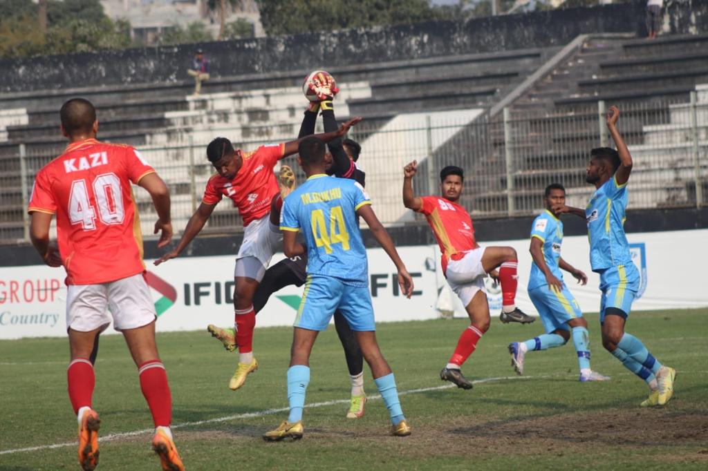 Today's match of 'Bashundhara Group Federation Cup 2022-23' was held between Bashundhara Kings vs Chittagong Abahoni Ltd. Bashundhara Kings won the match by 2-0. For Bashundhara Kings, Topu Barman scored the first goal in the 40th minute, and Miguel Ferreira scored the second goal in the 55th minute from penalty. Suman from Bashundhara Kings and Tarek from Chittagong Abahoni Ltd. got direct red card and were forced to leave the ground in the 86th minute.